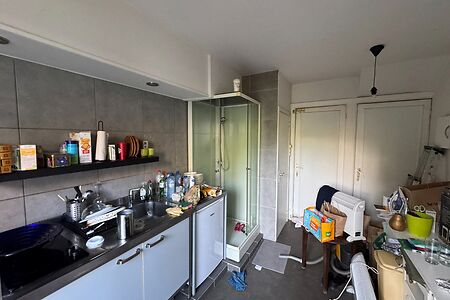 TE HUUR - GENT. Op een toplocatie vlakbij het Sint-Pietersstation bevindt zich dit karaktervolle handelspand met uitstekende zichtbaarheid. De royale vitrine zorgt voor een opvallende etalage en garandeert maximale zichtbaarheid en publieksbereik voor uw zaak. Het interieur bestaat uit een lichtrijke, open ruimte die flexibel in te richten is naar de noden van uw onderneming. Achteraan vindt u een afzonderlijk bureel – ideaal voor administratie of rustig overleg – evenals een zithoek met ingerichte keuken. Bovendien beschikt het pand over een ruime kelder en een groene stadstuin, perfect voor een korte pauze of extra opslag. Voorzien van alle nodige comfort, waaronder een toilet en douche, is dit pand bijzonder geschikt voor uiteenlopende professionele activiteiten. Beschikbaar vanaf februari. Huurprijs: €1.675/maand.