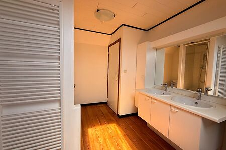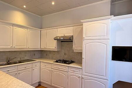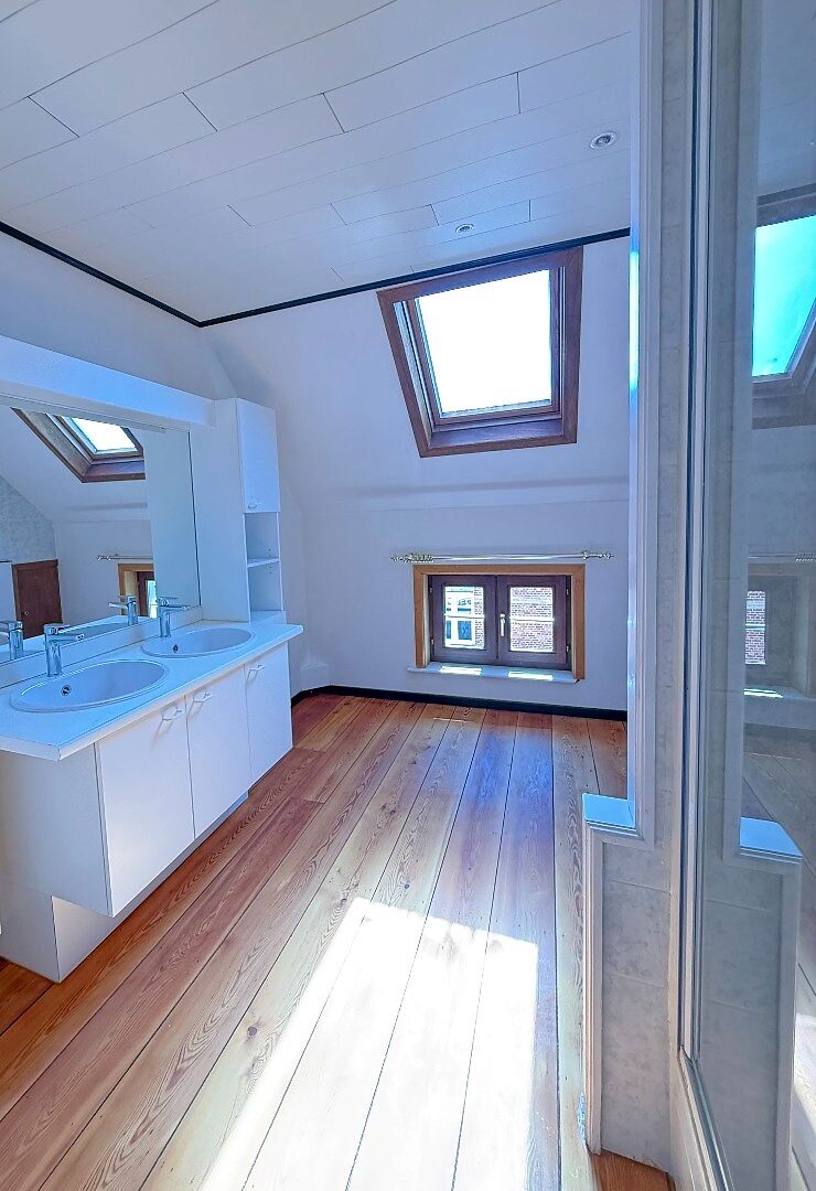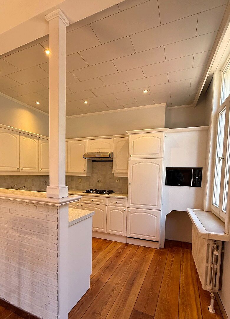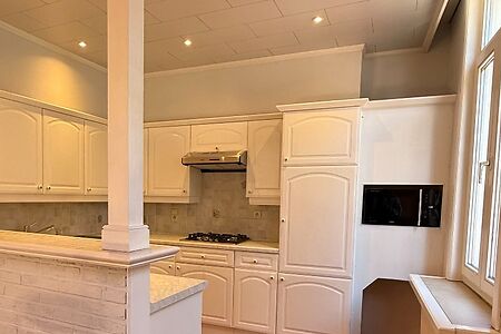 TE HUUR - GENT. Gelegen in een aangename buurt vlak bij het Prinsenhof en het Rabot, bevindt zich dit charmante appartement waar gezelligheid troef is en een warme, hedendaagse uitstraling centraal staat. U komt binnen via een houten trap die u toegang geeft tot het appartement en uitkomt in de lichtrijke leefruimte. De grote raampartijen zorgen voor een overvloed aan natuurlijk licht, wat samen met de houten plankenvloer een bijzonder gezellige en uitnodigende sfeer creƫert. De open keuken sluit mooi aan op de leefruimte en is uitgerust met vernieuwde toestellen. Het keukeneiland met bar vormt een fijne plek om te aperitieven of gezellig te tafelen met vrienden en familie. Verder beschikt het appartement over een praktische afzonderlijke berging en een apart toilet. Op de bovenverdieping bevindt zich een zeer ruime slaapkamer met voldoende plaats voor een comfortabel slaap- en eventueel werkgedeelte. De badkamer is stijlvol afgewerkt en voorzien van een douche, dubbele lavabo en toilet, waarbij comfort en functionaliteit mooi samenkomen. Een ideaal appartement voor wie op zoek is naar comfortabel wonen op een centrale locatie in Gent, met alle voorzieningen in de onmiddellijke nabijheid. Huurprijs: 950 EUR/maand EPC: 237kWh (label C)