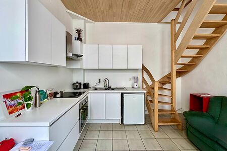 Te huur - Gent. In een rustige buurt tussen de Coupure en het historisch centrum van Gent vind je deze gezellige en goed ingedeelde duplex-studio. De leefruimte is lichtrijk en voorzien van een ingerichte keukenhoek. Via een trap bereik je de bovenverdieping met een open slaapgedeelte, een compacte badkamerhoek met douche en lavabo, en een afzonderlijk toilet. Deze studio is ideaal voor wie op zoek is naar een knusse, goed gelegen woonplek vlak bij het water én op wandelafstand van de stadskern. Domicilie verplicht. Huurprijs: €750 per maand. Geïnteresseerd? Laat snel van je horen – dit plekje is snel weg!