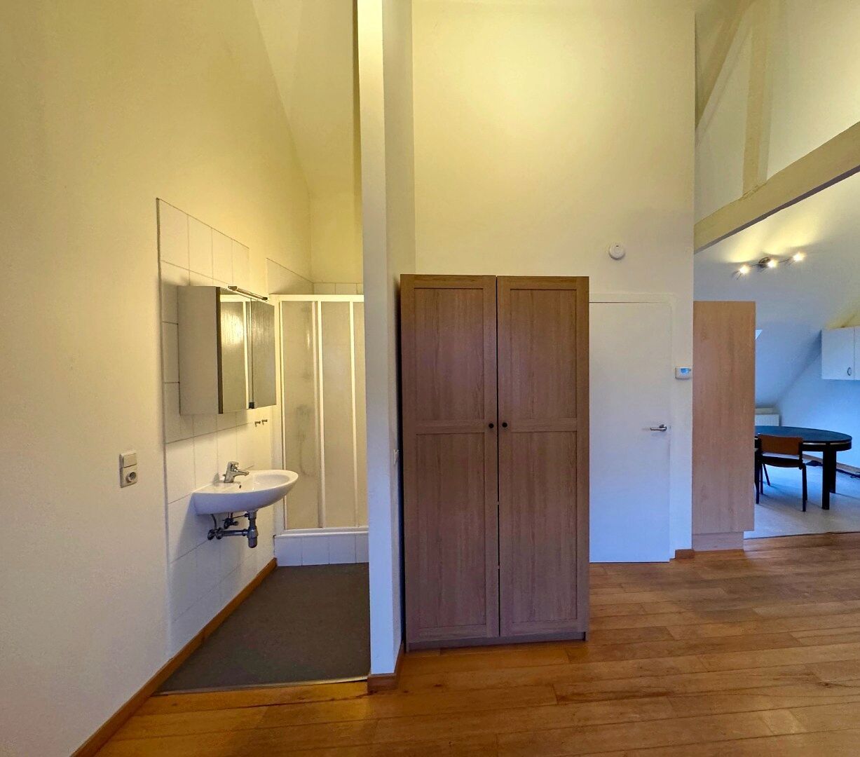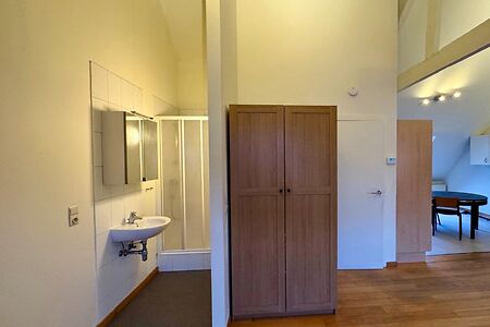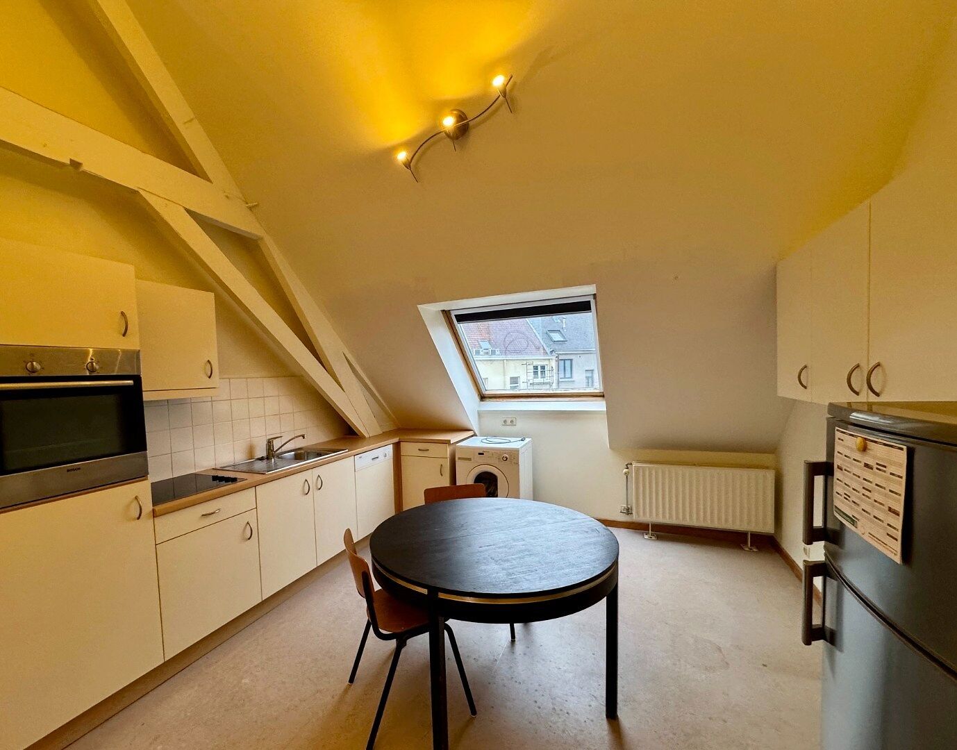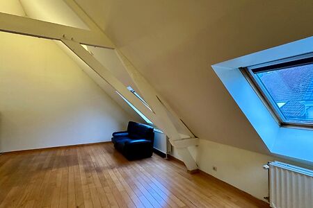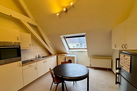 TE HUUR - GENT. Instapklare en ruime studio met veel lichtinval en een warme, gezellige sfeer. De studio beschikt over een volledig ingerichte open keuken met aansluiting voor de wasmachine, een lichtrijke woonkamer en een knusse slaaphoek. De warme parketvloer en de karaktervolle balken tot in de nok geven het appartement extra charme. De moderne douchekamer en het aparte toilet zorgen voor optimaal comfort. De maandelijkse huurprijs bedraagt €795, met een algemene kost van €55. EPC-label C (nr. 0000398304).